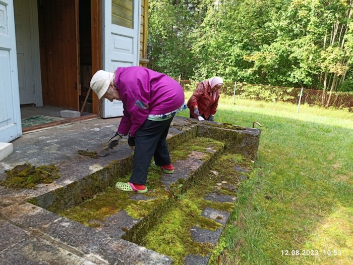 Aknad said puhtaks, seintelt osa vana värvi kraabitud, trepilt sammal eemaldatud jm. Sinna juurde paiga lugu ja meenutused - tõeline kogukonnapäev. Mõne päeva pärast sai katus juba paranduse ja värvi.